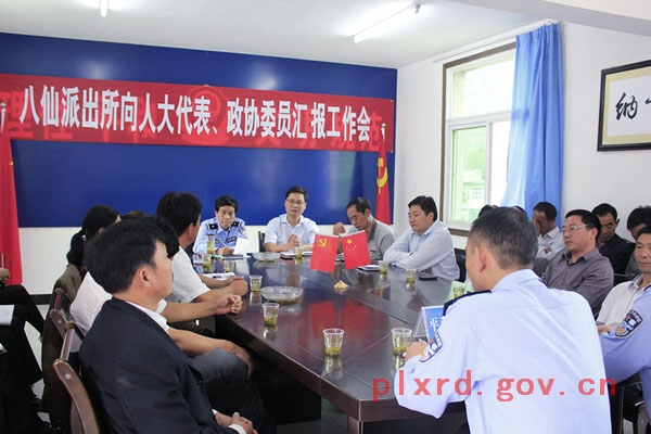 为进一步改进公安工作,全面提高服务能力,确保治安大局,2013年9月17日,八仙派出所广开纳谏之门,通过向人大代表、政协委员汇报工作、征求意见和建议,集思广益,架起与群众沟通桥梁。