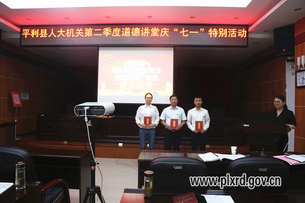 6月30日,县人大机关开展2017年第二季度道德讲堂“七一”特别活动,为伟大的中国共产党庆祝96岁生日。县人大常委会主任汪贤存,副主任陈首松、杨飞参加活动。
