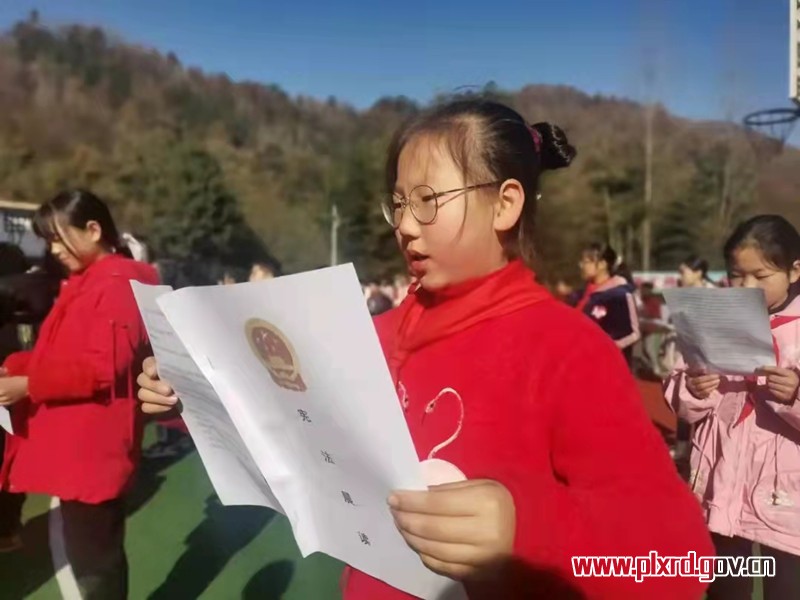 在12月4日第八个宪法日即将来临之际,兴隆镇人大组织该镇中心小学师生在学校操场开展集体诵读宪法活动。